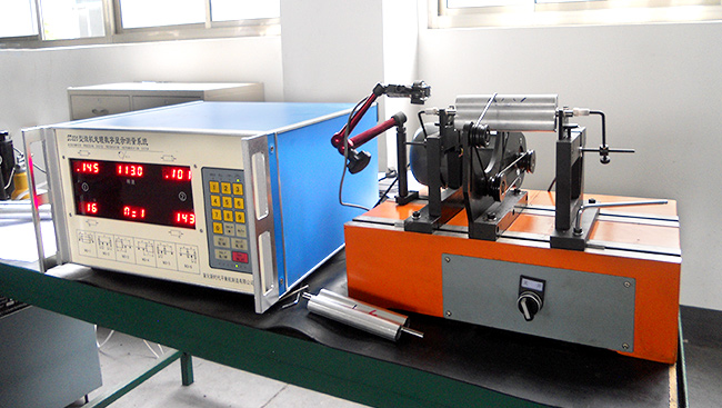 平衡機(jī)由控制驅(qū)動(dòng)部分、彈性支撐部分和傳感測(cè)量系統(tǒng)部分組成,驅(qū)動(dòng)部分控制旋轉(zhuǎn)體旋轉(zhuǎn),其不平衡震動(dòng)迫使彈性支撐架發(fā)生變形,由安裝在支撐架的傳感器感應(yīng)出電信號(hào)給電測(cè)系統(tǒng),最后經(jīng)過(guò)電測(cè)系統(tǒng)的計(jì)算處理直接顯示出平衡量的大小和位置。